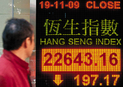 中新網(wǎng)11月20日電 據(jù)香港《文匯報(bào)》報(bào)道,受外圍股市偏軟影響,恒指19日高開56點(diǎn)后即向下,午后跌幅進(jìn)一步擴(kuò)大,最低曾見(jiàn)22587.18點(diǎn),全日收?qǐng)?bào)22643.16點(diǎn),跌197.17點(diǎn),全日總成交697.69億元,國(guó)企指數(shù)跌217.03點(diǎn)至13470.98點(diǎn)。