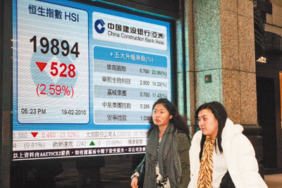 中新網(wǎng)2月20日電 據(jù)香港《文匯報》報道,美國突然調(diào)高貼現(xiàn)利率,市場擔心美國會提早退市及加息,港股急跌528點,失守20000點,跌幅達2.6%,是19日亞太區(qū)股市中表現(xiàn)最差的市場。香港地產(chǎn)股、內(nèi)銀股及資源股成為跌市重災(zāi)區(qū),成交淡靜只有430.7億元。