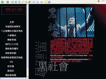 其中一名學(xué)生以黑社會為題制作網(wǎng)站,內(nèi)容涉及幫派歷史、入會儀式、誓詞、暗語等,該生在首頁聲稱設(shè)立網(wǎng)站并非宣揚不法行為,只希望透過披露被視為禁忌的敏感數(shù)據(jù),避免青少年因好奇而模仿或加入黑社會。