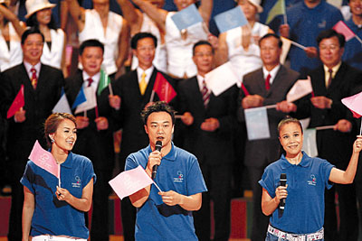 胡偉民也透露,歷時(shí)2小時(shí)的閉幕典禮,內(nèi)容精彩豐富,來自5個(gè)國(guó)家或地區(qū)的流行歌手,包括韓國(guó)的蔡妍、日本的中孝介、臺(tái)灣的任賢齊、內(nèi)地的朱哲琴及香港的陳奕迅,除獻(xiàn)唱自己的首本名曲,更會(huì)透過美妙歌曲,配合舞蹈員的動(dòng)人舞姿,唱出每個(gè)觸動(dòng)人心的東亞運(yùn)故事,包括運(yùn)動(dòng)員由訓(xùn)練至奪取獎(jiǎng)牌的經(jīng)過、及義工參與東亞運(yùn)過程及所作出的貢獻(xiàn)。