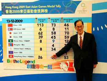 曾德成在總結(jié)東亞運(yùn)時(shí)表示,東亞運(yùn)的成功,除了運(yùn)動(dòng)員努力,也要多謝市民的支持。他說(shuō),東亞運(yùn)達(dá)致傳奇一刻的目標(biāo),包括香港在足球賽事奪得金牌,而獎(jiǎng)牌以至金牌數(shù)目,都是空前佳績(jī)。
