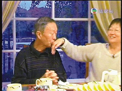 在眾人要求他親吻太太下,高錕登時滿臉通紅,但仍掛著可愛的笑容,有點(diǎn)猶豫地反問大家:“這怎么做呀?”坐在丈夫身旁的黃美蕓即醒目地遞上手背給丈夫,笑說:“就親手啦!”以回應(yīng)眾人的要求。高錕于是輕吻愛妻手背,讓黃美蕓甜笑起來。其后她忍不住摸摸高錕的臉頰,取笑丈夫面紅。