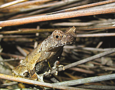 發(fā)掘學生組“十大熱點”冠軍的蘇樂軒,現(xiàn)就讀香港大學生態(tài)及生物多樣性學系,他在一次生態(tài)夜行中,在龍虎山郊野公園發(fā)現(xiàn)愛“夜蒲”的短腳角蟾。他指出,短腳角蟾是香港原生物種,臉上有角,樣子趣怪,多在夜間出沒,雄性更會在每年夏春的繁殖期利用叫聲吸引雌性,已被世界保育聯(lián)盟評為瀕危物種。