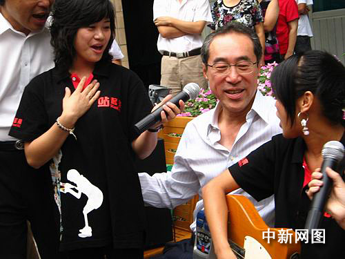 在地震傷員康復(fù)中心,唐英年受到了熱烈的歡迎。今年10歲的夏鳳婷地震時右肘部骨折,但愛好畫畫的她用安裝的機電手,為唐司長畫了一幅色彩斑斕的海上日出。幾位腿部受傷的少女聲情并茂地唱起了《小城故事》,在她們動人歌聲的感染下,唐英年興致勃勃地走到中間一起唱了起來。另一位雙腿都安裝著假肢的青年則在一旁表演起了自行車,向唐司長展示自己的康復(fù)成果。