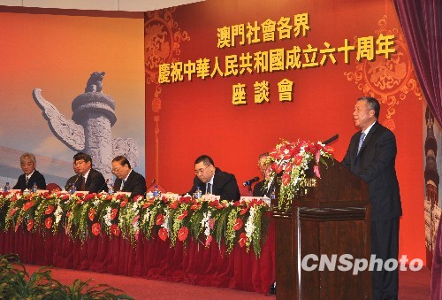 何厚鏵在致辭時表示,在國家六十華誕即將到來之際,澳門回歸祖國亦快將十周年!耙粐鴥芍啤狈结樅妥鎳姆睒s富強,是保持澳門長期繁榮穩(wěn)定的根本保證。