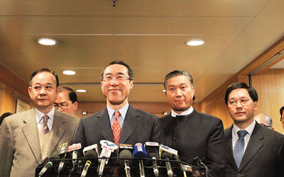 唐英年、政制及內(nèi)地事務(wù)局局長(zhǎng)林瑞麟、民政事務(wù)局局長(zhǎng)曾德成等,19日出席18區(qū)區(qū)議會(huì)正副主席例會(huì),聽(tīng)取他們對(duì)剛發(fā)表的咨詢文件意見(jiàn),歷時(shí)約為1小時(shí)。據(jù)了解,除了2名區(qū)議會(huì)主席因事未能出席,其它區(qū)議會(huì)正副主席都有出席會(huì)議。