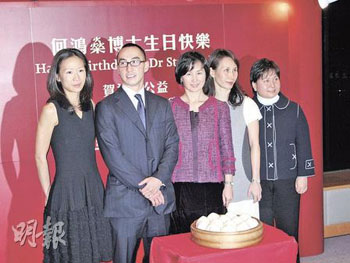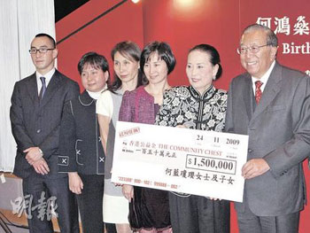 四太大女何超盈手持寫(xiě)上“Happy Birthday 掂呀!”的巨型生日卡賀老父,四太則用手做出心形手勢(shì)表示送個(gè)心給賭王。二太藍(lán)瓊纓則率領(lǐng)三女一子何超瓊、何超鳳、何超蕸及何猷龍出席“賀禮捐公益”活動(dòng),代表賭王將一張150萬(wàn)元的支票捐贈(zèng)公益金,并透露賭王進(jìn)展良好,但仍未可出院,要在醫(yī)院度生辰。