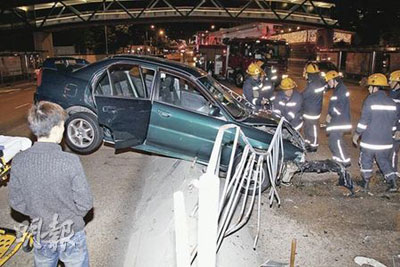 最新一宗懷疑索K后駕駛事故在26日凌晨約1時50分發(fā)生。29歲梁姓男子駕駛私家車沿窩打老道往獅子山隧道行駛,途經(jīng)窩打老道113號九龍?zhí)習(xí)䦟γ鏁r突然失控,撞毀路中鐵欄,車身擱在石欄上,車頭嚴(yán)重?fù)p毀,前半車身更沖入對行線,車尾懸空。