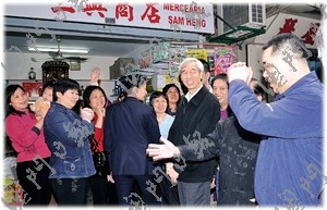 崔世安巡區(qū),傳媒蜂擁而至,所到之處無不吸引居民圍觀。不少居民隔住人群高喊自己的訴求,希望崔世安解決就業(yè)問題,繼續(xù)“派錢”解困。不少商鋪?zhàn)鲎銣?zhǔn)備,崔世安與負(fù)責(zé)人、職員互相拜年問好,不時(shí)詢問經(jīng)營情況。在探訪關(guān)閘一藥房時(shí),還特別詢問藥劑師在什么地方畢業(yè),藥房生意好嗎?