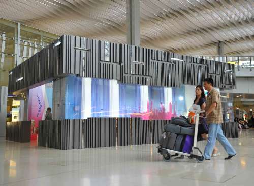 中新網(wǎng)4月30日電 據(jù)香港《大公報》報道,上海世博盛會蓄勢待發(fā)。為宣傳上海世博香港館,香港國際機場特地仿照香港館外形,在客運大樓內(nèi)設(shè)立“微型”香港館,介紹香港館特色。政制及內(nèi)地事務(wù)局局長林瑞麟說,香港館在試運期間,每日有一萬人次參觀,推算世博期間香港館參觀人次可達一百八十萬人次。