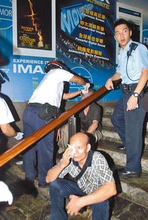 警方接報(bào)大為緊張,大批警員及在區(qū)內(nèi)監(jiān)視的探員紛趕至,了解后立即登上大廈搜查。另方面,救護(hù)員到場(chǎng),替被腐蝕液濺傷的街坊清洗,其中3名45至60歲男子需送院診治。
