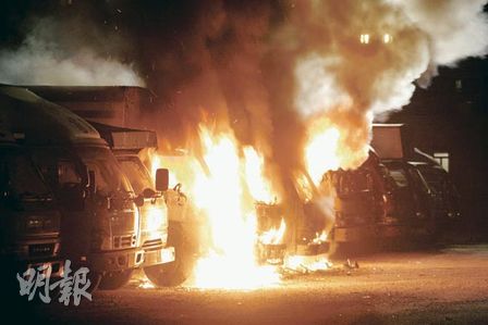 事發(fā)昨凌晨近4時,5輛貨車車頭冒出熊熊火光,更多次傳出爆炸巨響。消防員射水半小時后將火救熄,但發(fā)現(xiàn)兩處火頭,火勢亦迅速擴散,認為起火原因有可疑。案件現(xiàn)交由九龍城刑事調(diào)查隊第8隊跟進,警方正聯(lián)絡各車主調(diào)查。