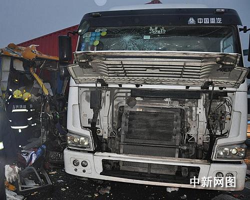 據(jù)現(xiàn)場目擊者介紹,事發(fā)時集裝箱卡車與前面一輛摩托車刮擦后猛打方向盤,導(dǎo)致后面的一輛大巴車避讓不及,與之迎面相撞。(完)
