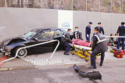 司機(jī)和女友人僅手腳輕傷,附近居民見狀報(bào)警,救護(hù)員接報(bào)到場,證實(shí)男教師已死亡,隨即用帳篷覆蓋尸體,另將1男2女傷者送院救治。警方封鎖現(xiàn)場調(diào)查,特區(qū)政府化驗(yàn)師到場搜證,發(fā)覺現(xiàn)場只有很短的上臺剎車胎痕,肇事私家車事后被拖走檢驗(yàn)。