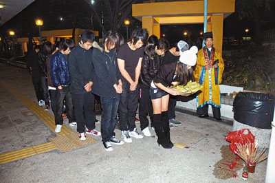 至吳遺體移送殮房時,各人更脫下外套一字排開,組成“人肉屏障”阻擋記者鏡頭。至傍晚時分,該批青少年帶備香燭冥鏹,到介仔遇襲現(xiàn)場路祭,東九龍重案組及反黑組探員聞風(fēng)而至,逐一登記各人資料,并監(jiān)視路祭情況,眾青少年由一名儼如“大家姐”的少女率領(lǐng),拜祭一番后離去。