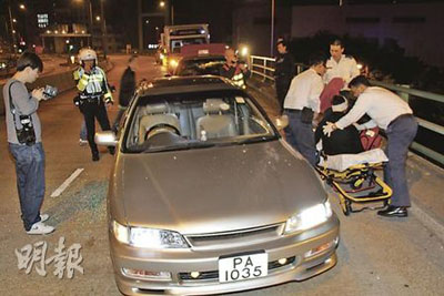 中新網(wǎng)1月22日電 據(jù)香港《明報(bào)》報(bào)道,香港三名猖狂惡煞,21日凌晨在灣仔行車天橋上高速飛車將仇家所駕私家車強(qiáng)行截停,用鐵錘敲爆車窗,遇襲司機(jī)慌亂倒車欲逃,卻撞及尾隨的士,無路可退下慘遭撲穿頭,血流滿面,車內(nèi)一個(gè)放有現(xiàn)金的手袋也被搶去,惡煞逃去無蹤。