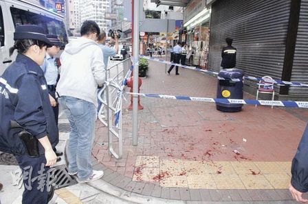 據(jù)悉,吳、鐘與3名同門兄弟,昨日凌晨在油麻地一間夜店因為“爭女仔”問題,與新義安人馬爭執(zhí),雙方在夜店并沒有動武。至清晨6時許,14K一方5人消遣后離開,途至油麻地佐敦道近廟街街頭時,突有3名手持牛肉刀的大漢追出,不由分說追斬各人,吳、鐘兩人走避不及,分別手部、腳部及背部中刀,渾身鮮血倒于街頭。3惡漢傷人后馬上跳上一輛接應黑色奧迪逃去。