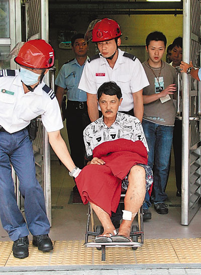 昨日下午3時(shí)50分左右,有人又再登門舊事重提,葉準(zhǔn)妻應(yīng)門,稱丈夫不在家,企圖打發(fā)他離開(kāi),未料對(duì)方突告情緒激動(dòng),在走廊跨過(guò)約4呎高欄河,揚(yáng)言跳樓,街坊見(jiàn)狀報(bào)警。警員接報(bào)迅速到場(chǎng),并趁其不備,一擁而上將他制服,混亂間其腳部擦傷,需送院敷治。