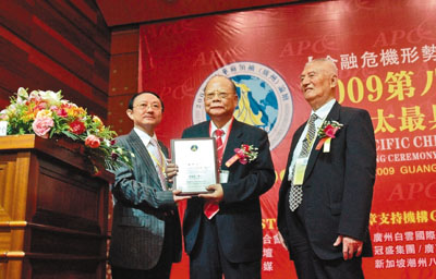 中新網(wǎng)8月4日電 據(jù)香港《文匯報》報道,原全國人大常委、香港金利來集團(tuán)董事局主席曾憲梓,日前出席2009第八屆亞太華商領(lǐng)袖論壇暨亞太最具社會責(zé)任感華商領(lǐng)袖頒獎盛典,并獲大會頒發(fā)最具責(zé)任感華商領(lǐng)袖大獎。