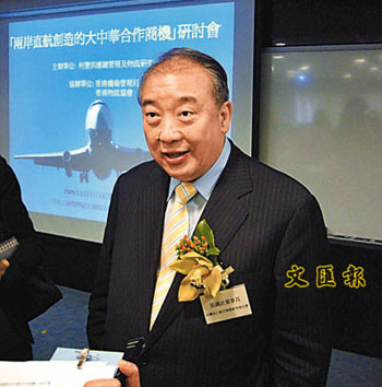 張國政指,目前每星期只有逾百班兩岸直航機(jī),對香港的影響不大,但如果航班陸續(xù)增加及可以實(shí)行客倉帶貨,則會對香港的航運(yùn)就造成一定影響。