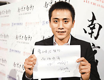去年發(fā)生四川地震時(shí),陸川和《南京!》的劇組人員在長春拍攝電影中,得知地震發(fā)生后,高圓圓、秦嵐以及整個(gè)劇組都有捐錢,一方有難八方支持。相隔一年,見到四川的同胞漸漸走出陰霾,“在此我希望對他們說:‘沒有什么可以阻擋我們對生命的向往,地震一周年,祝四川的同胞身體健康,快樂!’”
