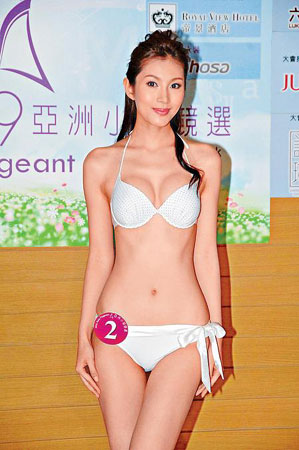 來自臺灣的劉伊心,因大熱門缺席,而被傳媒發(fā)現(xiàn)她原來身材很好,不過她說自己仍需瘦身,“想瘦多一點,愈瘦愈好,腰瘦一點,會美一點。(你腰圍多少?)近日沒有量度,之前是24至25吋!