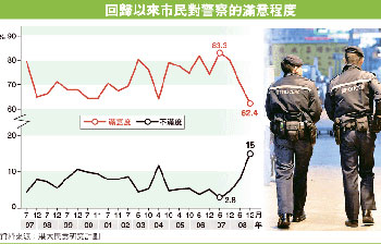 廖也說:“由于市民對公務(wù)員、公職人員要求高,加上以往警方滿意度都很高,稍有行差踏錯,影響便會較大,相信在近期事件影響下,市民要一段時間才能回復(fù)信心!