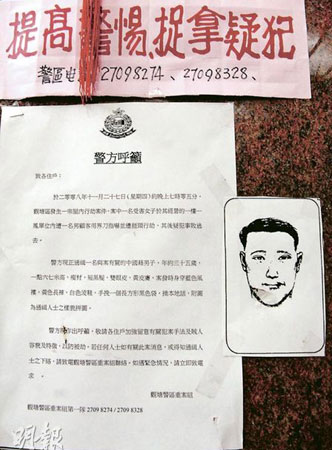警方1日晨返回土瓜灣道鳳姐兇案現(xiàn)場,向街坊派發(fā)問卷,至1日晚,西九龍總區(qū)刑事總部總督察鐘志明再率領(lǐng)30多名重案組探員登上涉案鳳樓調(diào)查,又持一份區(qū)內(nèi)鳳姐名單,分成多組逐戶拍門派發(fā)問卷。有鳳姐指出,探員曾詢問有否見過一個年約30余歲、5呎10吋高、身穿黑衣黑褲及背斜袋的可疑男子出沒,又叮嚀她們要小心門戶。