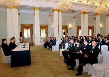會面在23日下午2時半開始,在一共約70位出席委員中,20多位發(fā)表了意見。曾蔭權(quán)以及全國政協(xié)常委徐展堂、梁振英坐在主席臺上。與會人士表示,曾蔭權(quán)認真聽取了建議,并簡略作了回應(yīng)。