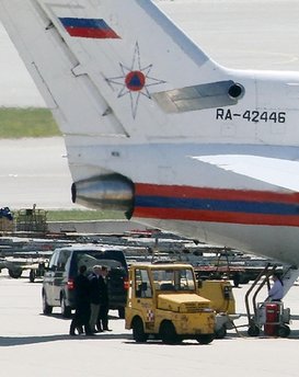 現(xiàn)場記者指出,該架客機停放在一架編號為RA42446的俄羅斯客機旁邊,兩架客機靠得很近,記者無法看見客機艙門的情況。