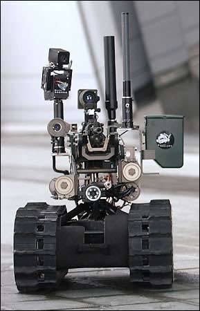 早在阿富汗戰(zhàn)爭(zhēng)之前,美軍就已經(jīng)將機(jī)器人用于搜救和安放炸彈。美軍于2000年就開始使用的“魔爪”機(jī)器人戰(zhàn)士,到了2004年美軍就有163個(gè)地面機(jī)器人戰(zhàn)士,2007年則快速增長(zhǎng)到5000個(gè),至少10款智能戰(zhàn)爭(zhēng)機(jī)器人在伊拉克和阿富汗“服役”。特別是,部署到阿富汗的智能機(jī)器人“赫爾墨斯”主要用于探穴鉆洞,它身上安裝有兩個(gè)照相機(jī),能爬進(jìn)漆黑洞穴并向外發(fā)送圖片。美軍另外一種機(jī)器戰(zhàn)士“劍”在伊拉克戰(zhàn)場(chǎng)更是神通廣大,它能輕易通過任何阻礙,備彈200發(fā),裝備一挺經(jīng)改造的M249型機(jī)槍,射速高達(dá)1000發(fā)/分鐘,火力強(qiáng)度足以與一挺重機(jī)槍媲美。而“背包”機(jī)器人則能在巷戰(zhàn)環(huán)境中捕捉、分辨反美武裝狙擊手的細(xì)微動(dòng)靜!靶釓棥睓C(jī)器人能靈敏地嗅出偽裝起來的爆炸物。名為“仿生蒼蠅”的機(jī)器人則可做一些復(fù)雜的手術(shù)……
