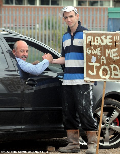 中新網(wǎng)7月26日電 據(jù)英國媒體26日報(bào)道,23歲的英國青年馬克•威爾頓近日舉著一塊自制的木牌,站在英國最繁華的特倫特河畔斯多克市為自己做起廣告。牌子上寫著“請給我份工作”。