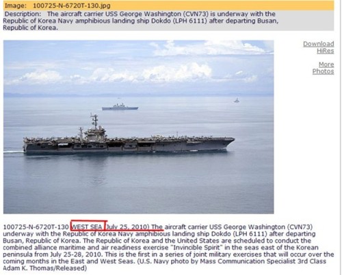 記者于7月28日再次登錄美國海軍官方網(wǎng)站,發(fā)現(xiàn)之前被標(biāo)為拍攝于“西!(中國稱“黃!)并在7月27日被刪除的照片,已經(jīng)再度被上傳到網(wǎng)站上,而其標(biāo)注的地點已經(jīng)被更正為“日本!。