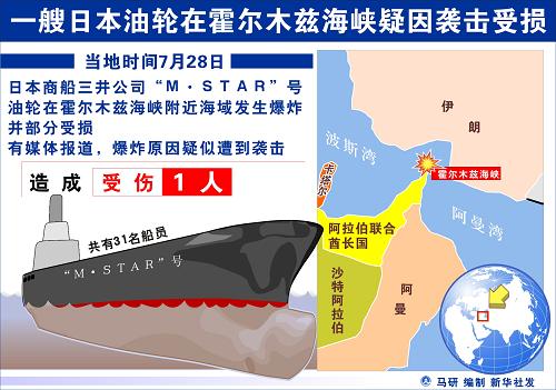日本國土交通省28日發(fā)布通報,日本商船三井公司所屬M(fèi)·STAR號大型油輪當(dāng)?shù)貢r間28日零時30分左右在行經(jīng)霍爾木茲海峽時發(fā)生爆炸,事發(fā)海域?qū)儆诎⒙I(lǐng)海。爆炸導(dǎo)致一名船員受傷,船體后部受損,但沒有造成原油泄漏。有船員稱,油輪疑似遭到襲擊。爆炸事件發(fā)生后,M·STAR號轉(zhuǎn)而駛往阿聯(lián)酋富查伊拉港。
