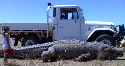 據(jù)稱,這條鱷魚從鼻子到尾部總長為22英尺(約合6.7米),相當(dāng)于一輛卡車的長度。現(xiàn)在這條巨型鱷魚已經(jīng)被當(dāng)?shù)剞r(nóng)民射死,因?yàn)樗恢痹谝u擊牛羊等家畜。