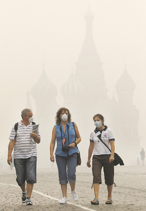 連日來(lái),莫斯科郊區(qū)的特大火災(zāi)使大量濃煙籠罩莫斯科。這是自1970 年以來(lái)莫斯科遭遇的最嚴(yán)重的煙霧現(xiàn)象。8 月4 日清晨,市中心的能見(jiàn)度僅為300 米左右,莫斯科東部一些地區(qū),能見(jiàn)度不到20米。在莫斯科留學(xué)的中國(guó)學(xué)生小馬表示,這幾天街上幾乎人人戴著口罩的景象,讓他想起2003 年的“非典”。