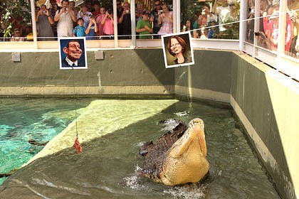 中新網(wǎng)8月20日電 據(jù)外電報道,澳大利亞一家動物園18日讓鱷魚對將于21日舉行的大選做出預(yù)測,結(jié)果現(xiàn)任澳大利亞總理吉拉德被鱷魚看好將在選舉中勝出。