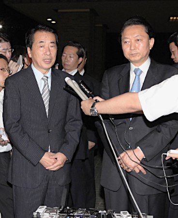 中新網(wǎng)8月31日電 據(jù)日本新聞網(wǎng)報道,為避免民主黨分裂,日本首相菅直人30日晚與前首相鳩山再度舉行了會談,就民主黨黨代表選舉事宜,準(zhǔn)備聽取黨內(nèi)“大佬”小澤一郎的意見,以避免出現(xiàn)“兩虎相斗”的局面。