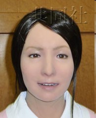 該機器人以真人年輕女性為原型,皮膚由硅膠制成,連接電腦的攝像頭在識別出操作者后會指揮機器人作出同樣的表情。該機器人會搖頭和點頭,還可以將操作者的聲音轉(zhuǎn)換成年輕女性的聲音。