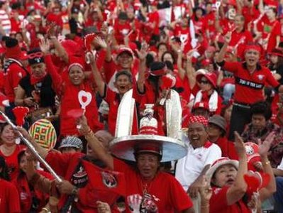 2006年9月19日,泰國(guó)發(fā)生政變,總理他信領(lǐng)導(dǎo)的政府被推翻。從今年3月起,“紅衫軍”在曼谷舉行長(zhǎng)達(dá)兩個(gè)月的示威集會(huì),并數(shù)次與軍隊(duì)發(fā)生沖突,造成近90人死亡,至少1900人受傷。5月19日集會(huì)結(jié)束后,納塔武等“紅衫軍”主要領(lǐng)導(dǎo)人前往警局自首并被扣押至今。(記者 朱麗)