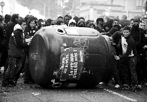 在里昂等城市,許多中學生放火焚燒汽車。在法國西北部,19日上午也有一所學校起火,起火原因是很明顯的縱火。