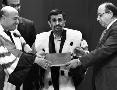 14日上午,內(nèi)賈德在位于貝魯特的黎巴嫩大學(xué)受到了師生們的熱烈歡迎,并被授予政治學(xué)榮譽博士學(xué)位。黎教育部長和黎巴嫩大學(xué)校長為他披上博士服并頒發(fā)了學(xué)位證書。獲得博士學(xué)位的內(nèi)賈德激動不已,當(dāng)場向?qū)W生們發(fā)表講話。他說:“我們相信真正的科學(xué)會為人類、和平、愛和友誼服務(wù)。”
