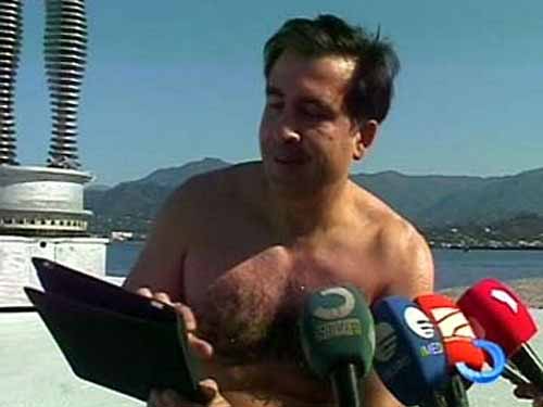 俄媒體報(bào)道認(rèn)為,薩卡什維利“赤膊”接受記者采訪“明顯是效仿普京進(jìn)行的炒作”。此前,普京還是俄總統(tǒng)時(shí)在西伯利亞赤膊打魚(yú)的照片曾引起關(guān)注,隨后奧巴馬同樣的“赤膊照”也震驚了世界。