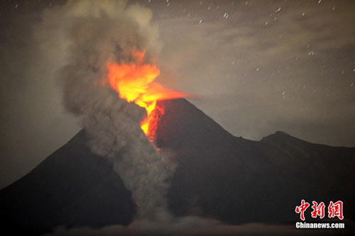 火山噴發(fā)出的火山灰覆蓋了廣大面積,包括28公里外的中爪哇首府日惹;鹕皆6日繼續(xù)噴出滾燙的火山灰和氣體。