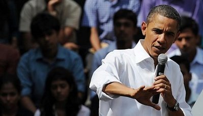 奧巴馬在訪問孟買的第2天,與孟買圣澤維爾學(xué)院(St. Xavier College)學(xué)生對話。他向?qū)W生們解釋,美國正積極與巴基斯坦合作,打擊伊斯蘭激進(jìn)份子,但進(jìn)展速度未如美國預(yù)期。
