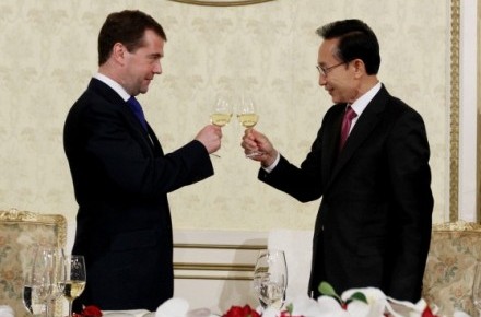 俄韓兩國經(jīng)濟(jì)互動近年來大幅改善,尤其是在高技術(shù)交流領(lǐng)域。韓國貿(mào)易協(xié)會最新數(shù)據(jù)顯示,2010年前9個(gè)月雙邊貿(mào)易達(dá)到124億美元,較2009年全年增加兩成。而梅德韋杰夫則預(yù)估,俄韓雙邊貿(mào)易量將突破170億美元。