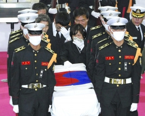 27日上午,兩名陣亡士兵的遺體告別儀式在城南市的一家軍隊醫(yī)院內(nèi)舉行。包括韓國總理金滉植、軍方高級官員和陣亡士兵家屬等數(shù)百人出席儀式。