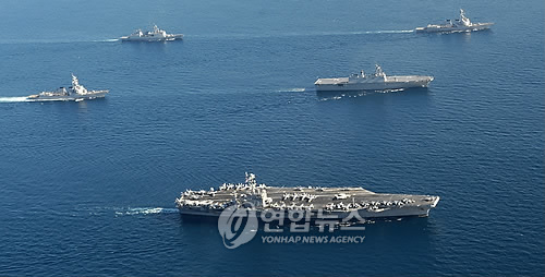 韓美兩軍當天在全羅北道群山港以西66公里處的于青島和忠清南道泰安半島以西55公里處格列飛列島等地進行了聯(lián)合防空、航母達隊訓練、反潛演習、海上補給戰(zhàn)術(shù)機動聯(lián)合演練等高難度戰(zhàn)術(shù)演習。