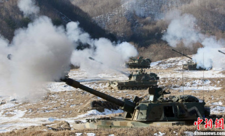 當?shù)貢r間20日下午2時30分開始,韓國在延坪島海域舉行的海上射擊訓練,持續(xù)了1小時左右,美軍代表亦有參觀演練。演習過程中,韓國軍隊動用K-9自行火炮、105mm牽引炮、火神防空跑、81mm迫擊炮等向延坪島西南方、韓防設置的海上射擊訓練區(qū)域(寬40公里,長20公里)發(fā)射炮彈,動員了編制內的所有火力。
