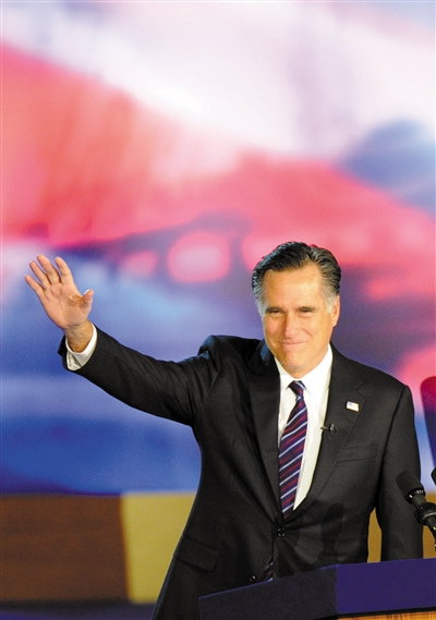 7日凌晨,大屏幕上果然出現(xiàn)了羅姆尼的畫面!拔易YR奧巴馬獲得勝利,他的支持者和團隊也應(yīng)受到贊譽!眾W巴馬的“粉絲”對羅姆尼的開場白報以掌聲。